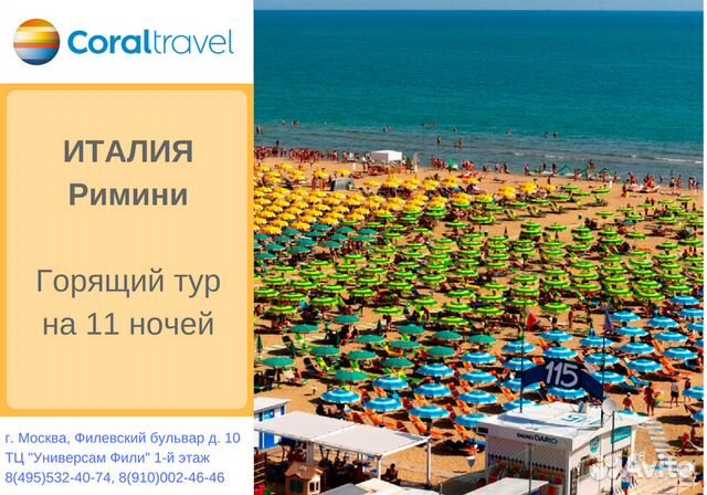 Ссылка: https://www.avito.ru/moskva/bilety_i_puteshestviya/goryaschiy_tur_v_italiyu_na_27_iyunya_1611497490